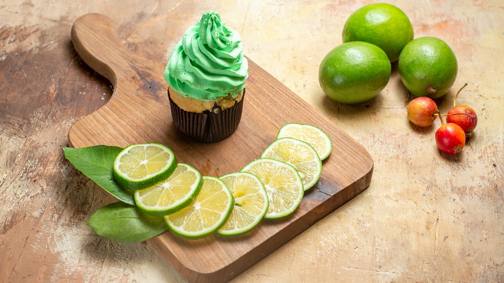 Edytor tapety: Babeczka i plastry limonki na desce