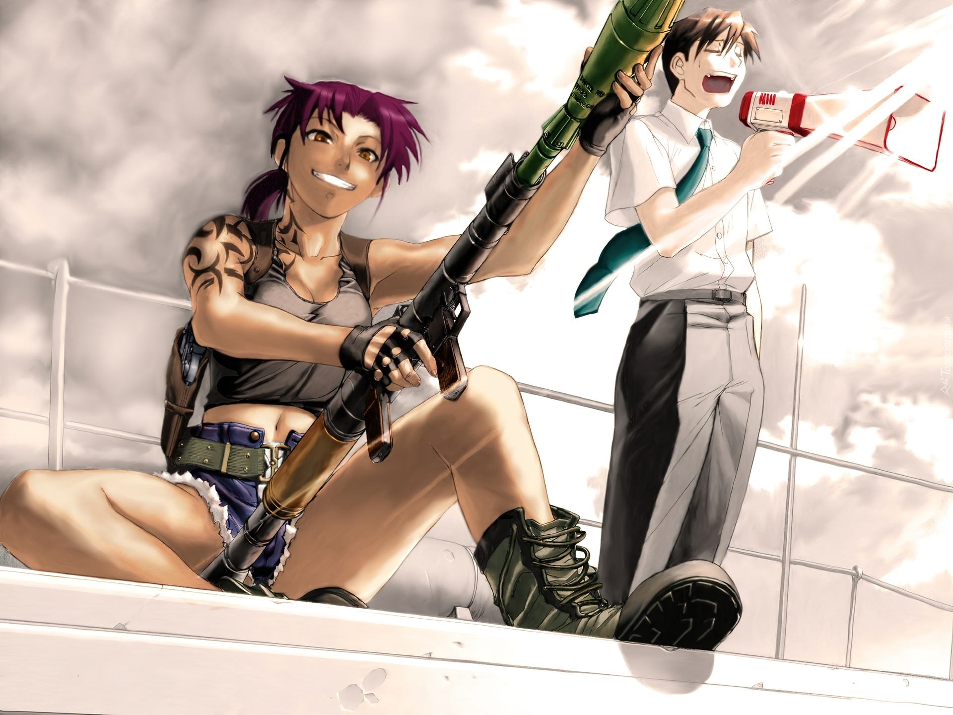 Edytor tapety: Black Lagoon, ludzie, bazooka, broń, kobieta, facet