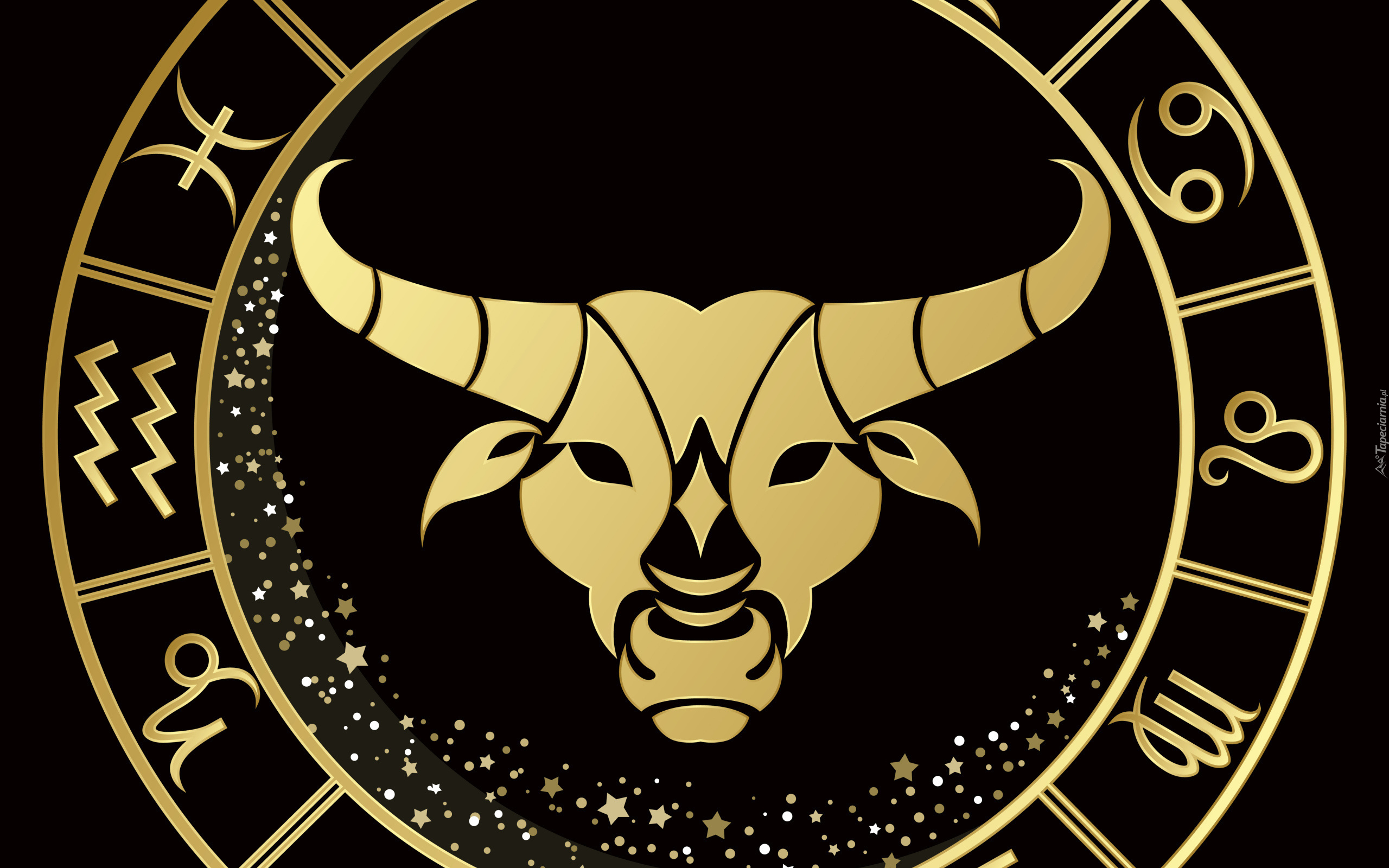 Edytor tapety: Złoty, Znak zodiaku, Byk, Czarne, Tło