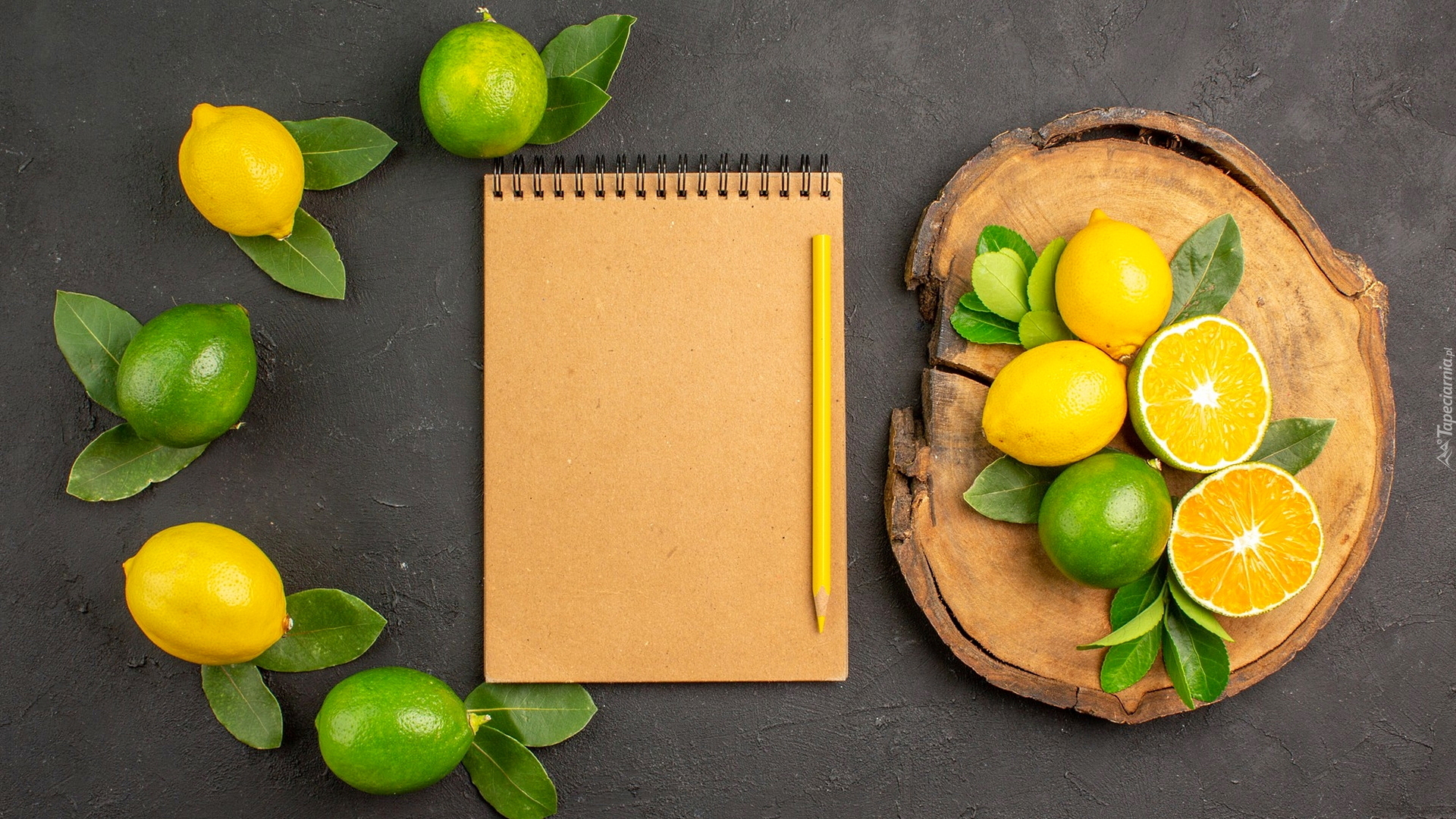 Edytor tapety: Limonki i cytryny obok notesu