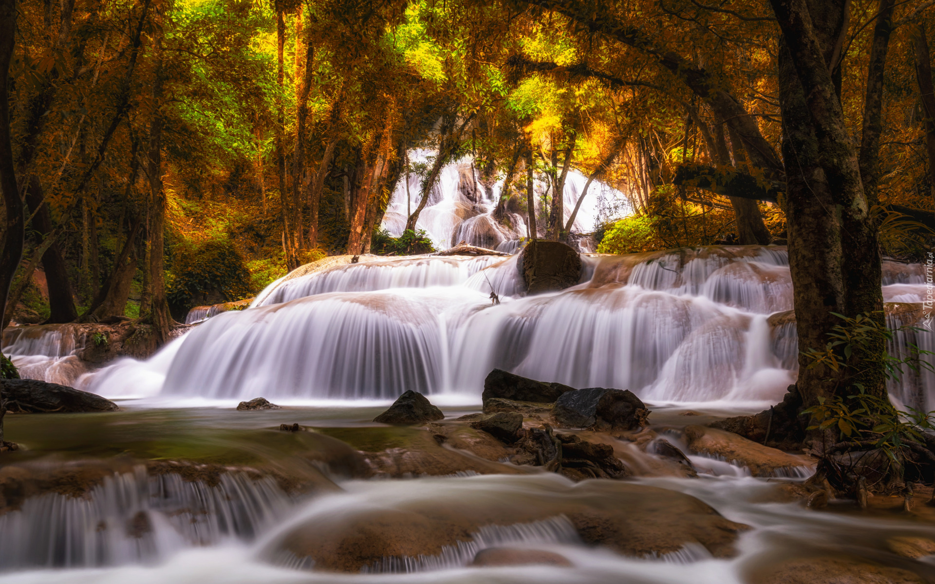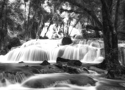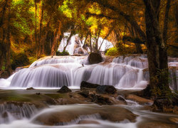 Edytor tapety: Drzewa przy wodospadach na rzece