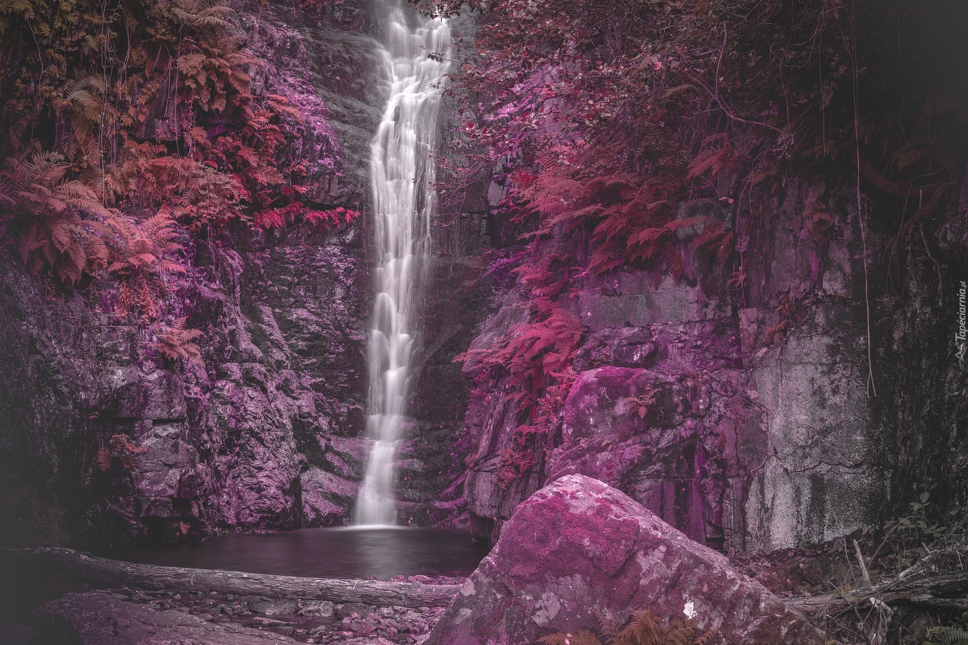 Edytor tapety: Paprocie na skałach przy wodospadzie