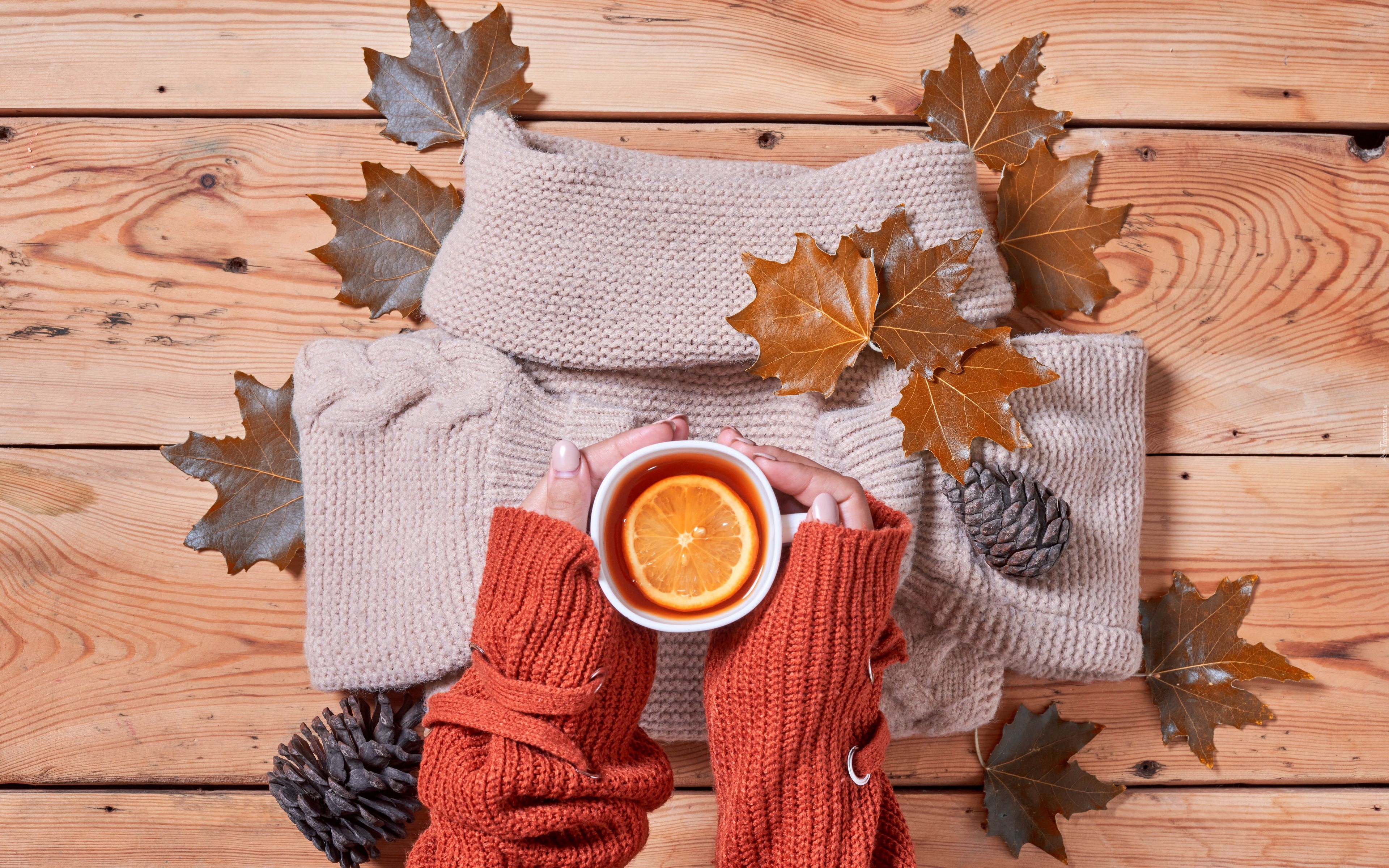 Edytor tapety: Kubek herbaty w dłoniach