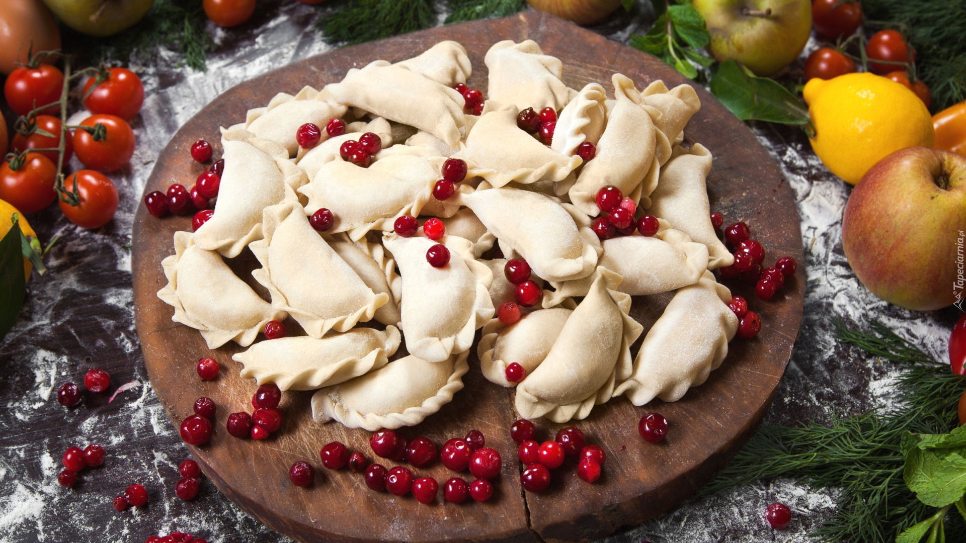 Edytor tapety: Pierogi na okrągłej desce