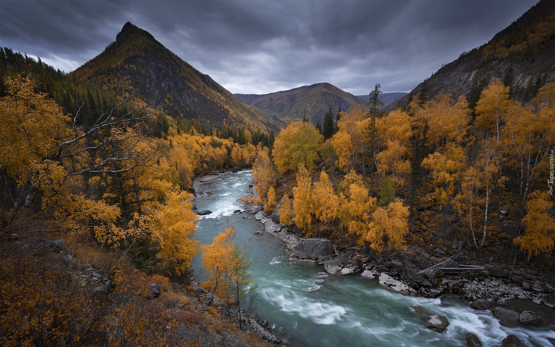 Edytor tapety: Rzeka Czuja na tle gór w Republice Ałtaju