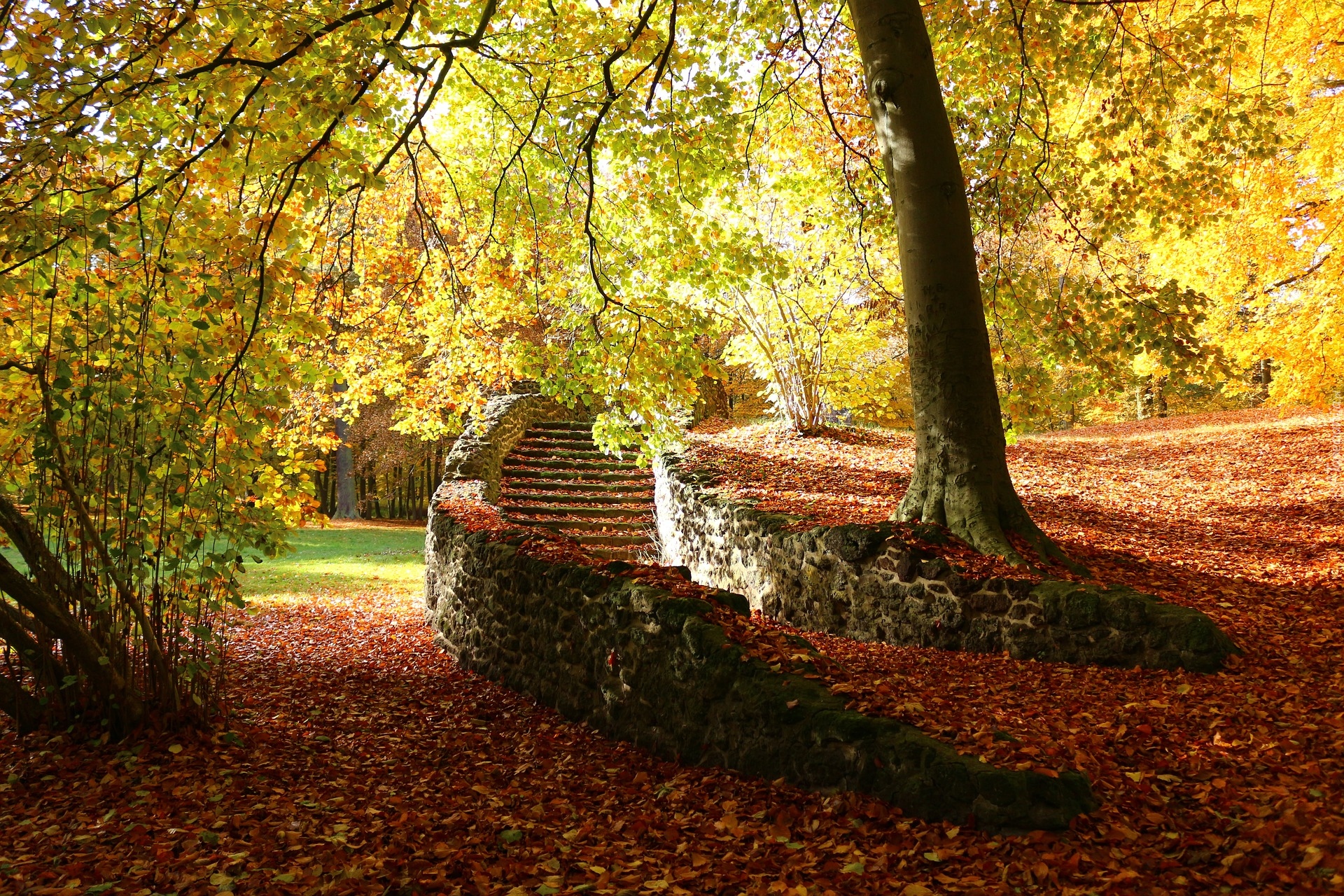 Edytor tapety: Opadłe liście na kamiennych schodach w parku
