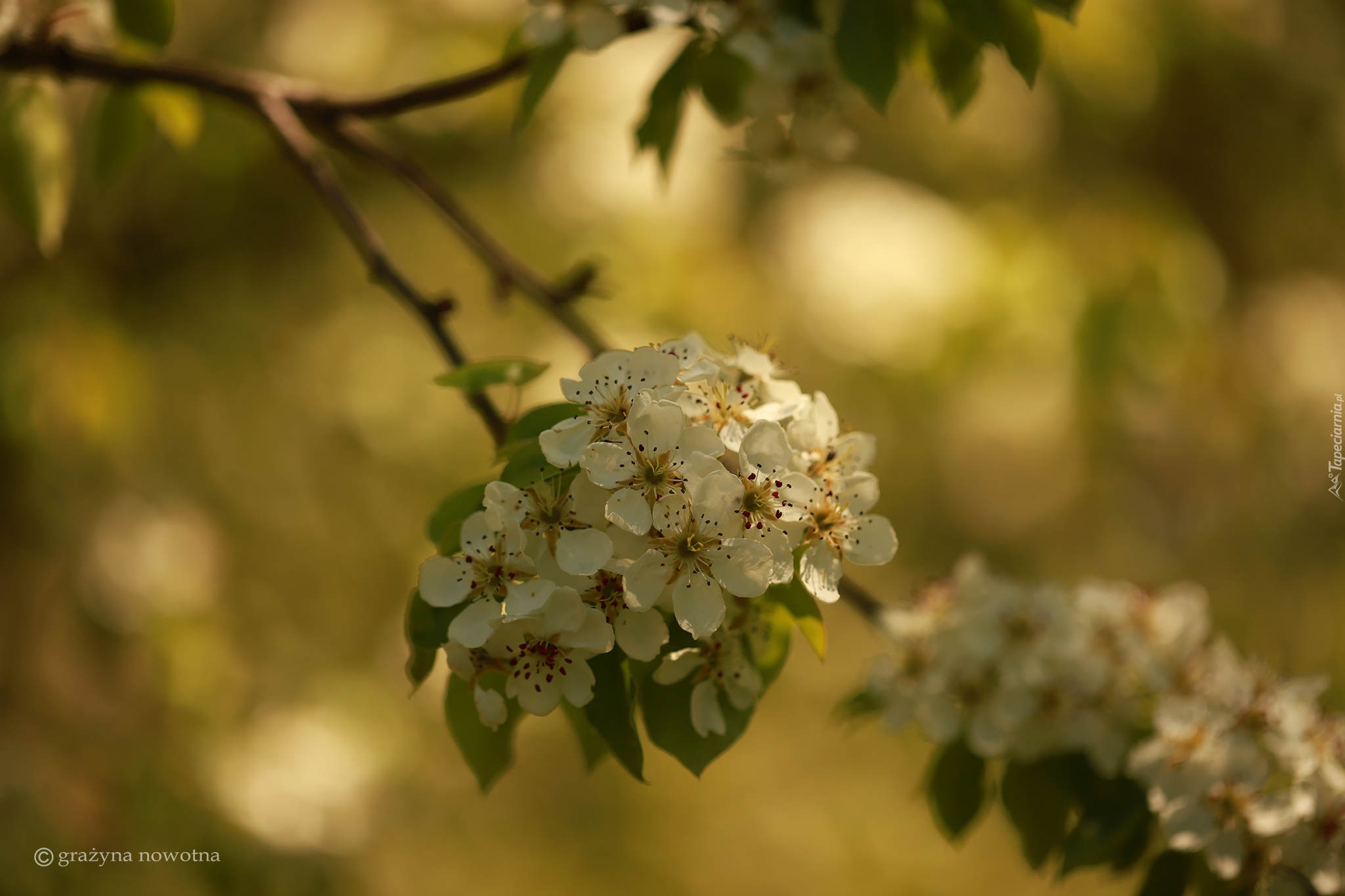 Edytor tapety: Gałązka z białymi kwiatami w zbliżeniu