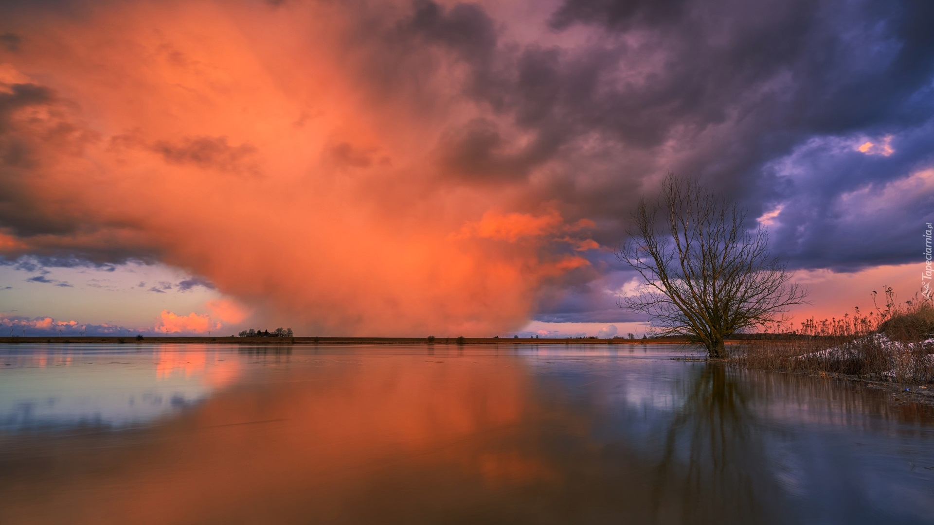 Edytor tapety: Kolorowe chmury nad jeziorem