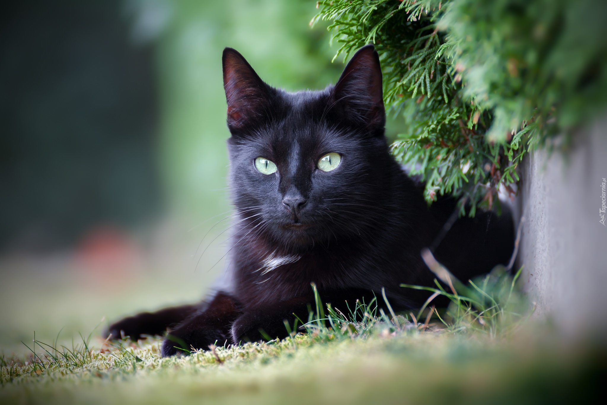 Edytor tapety: Czarny kot leżący pod gałązką