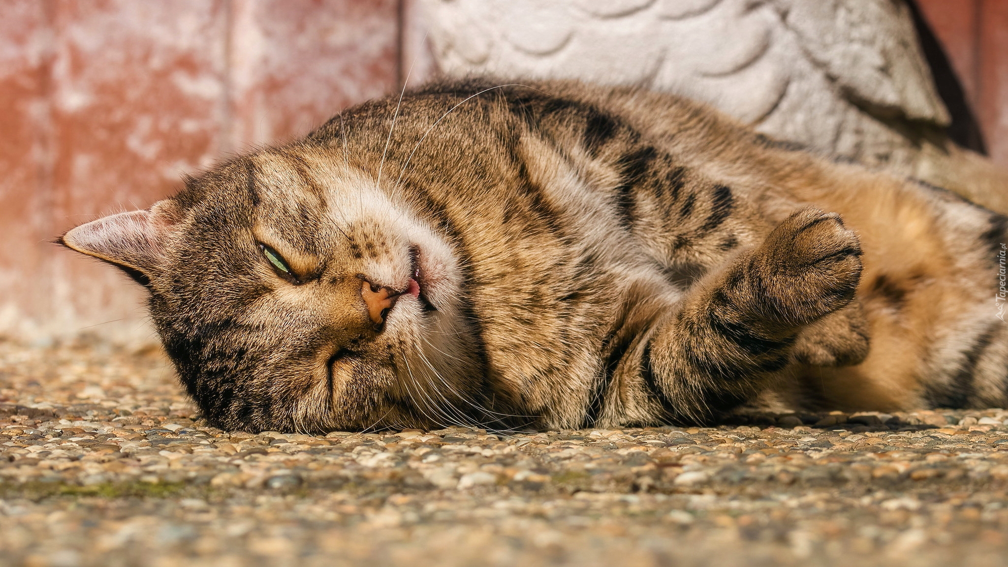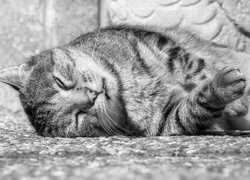 Edytor tapety: Śpiący szaro-bury kot