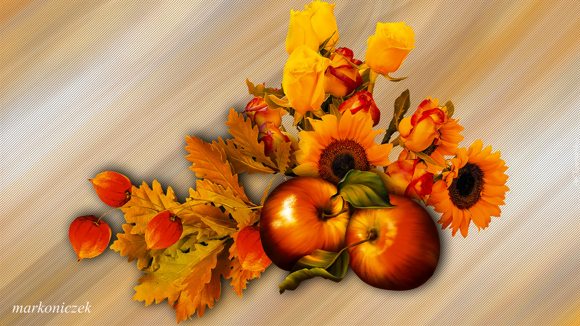 Edytor tapety: Jabłka i kwiaty w grafice