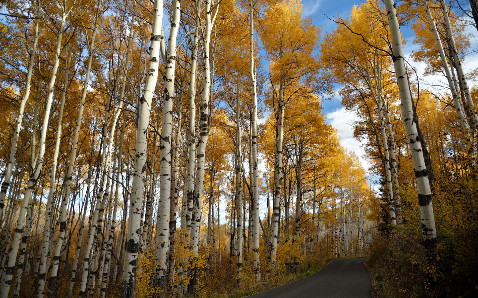 Edytor tapety: Rozświetlone topole osikowe przy drodze