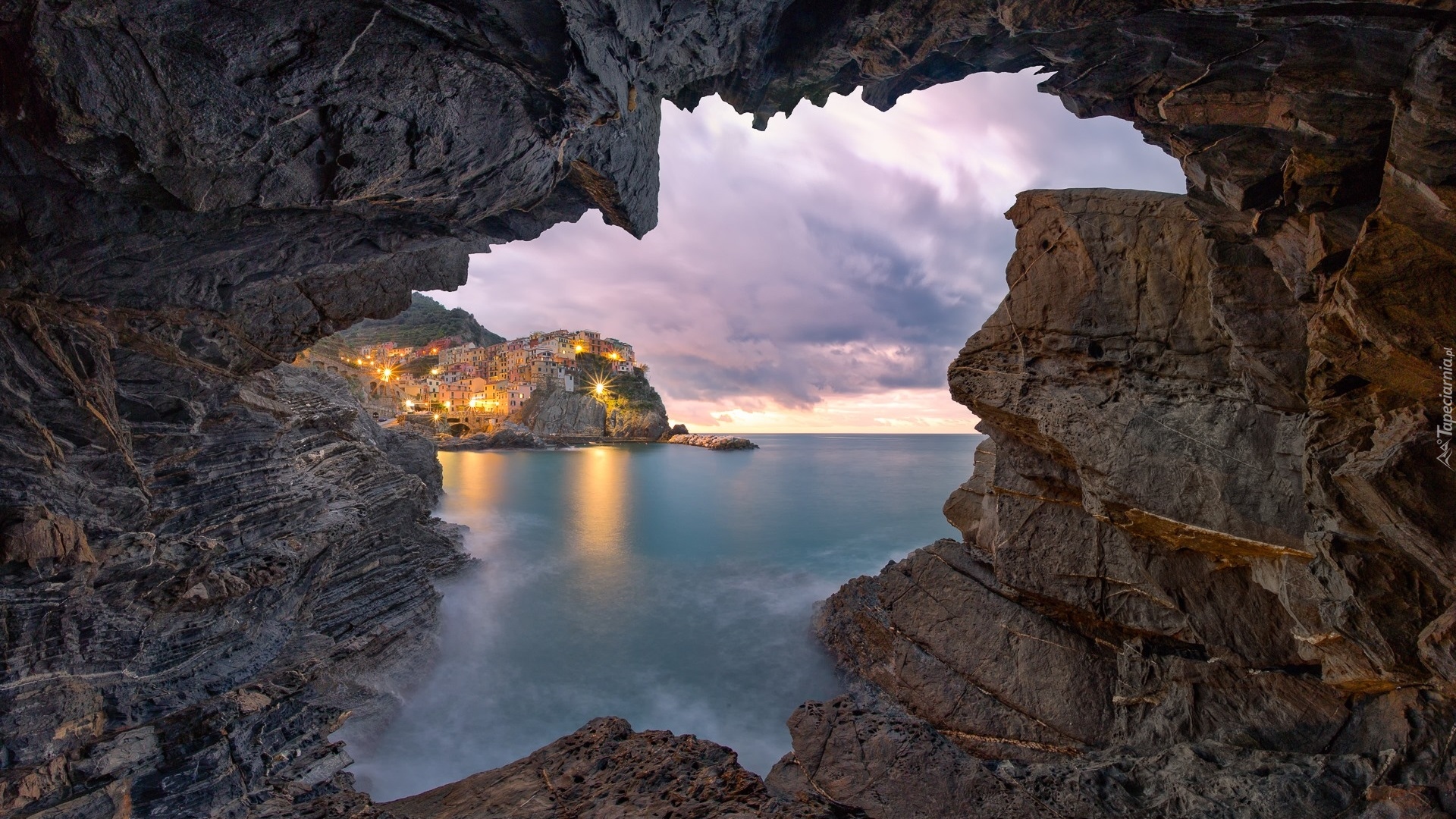 Edytor tapety: Widok zza skał na Manarolę