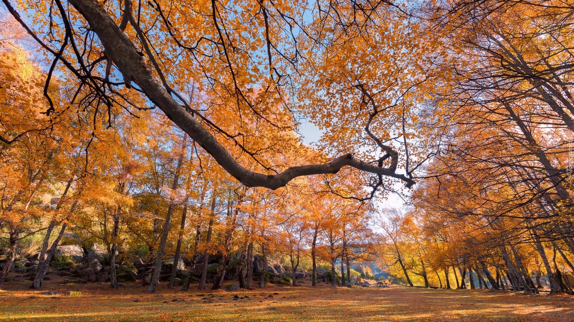 Edytor tapety: Jesienne drzewa w słonecznym blasku