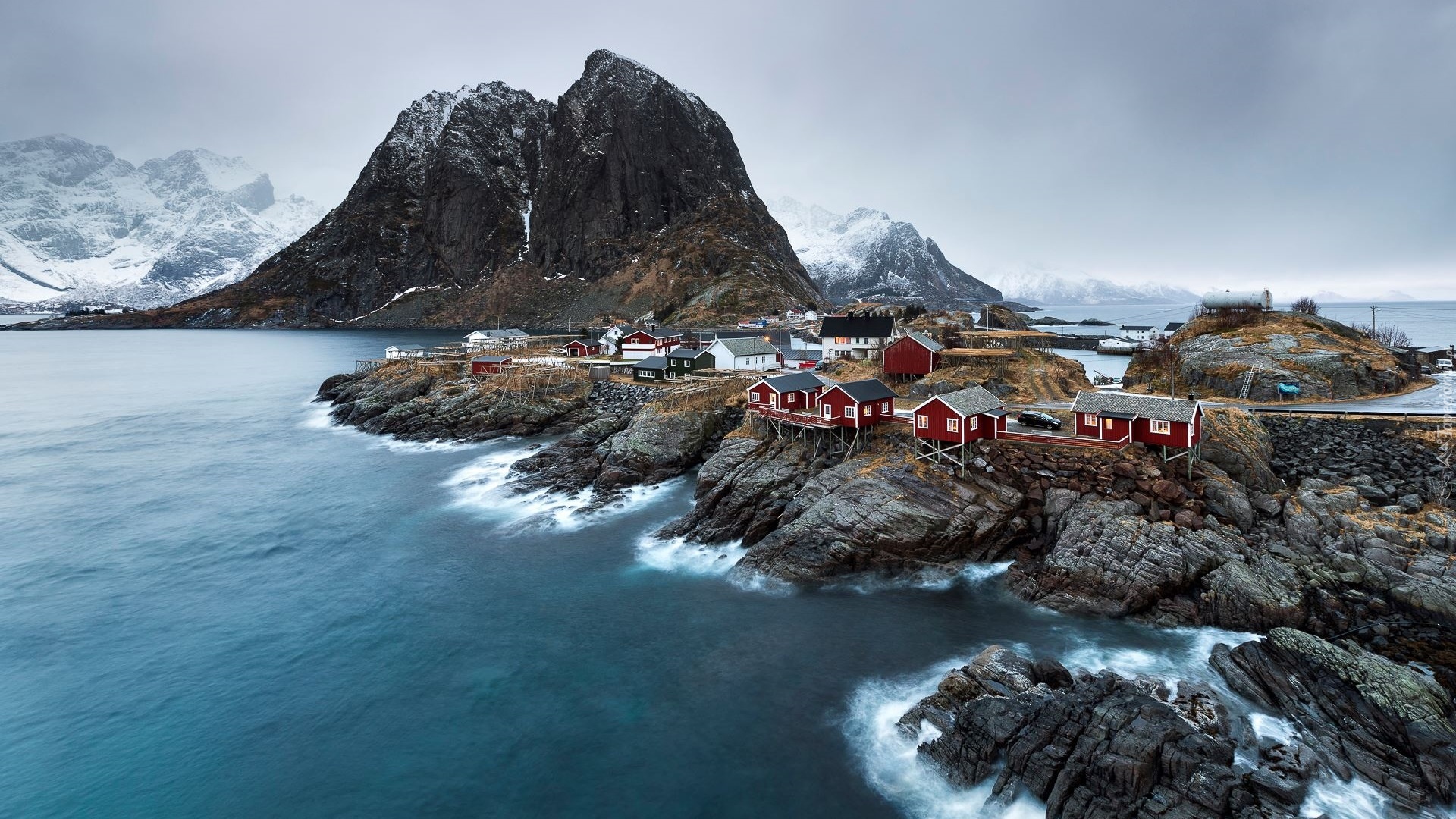Edytor tapety: Wioska Reine i góra Higravstinden na Lofotach