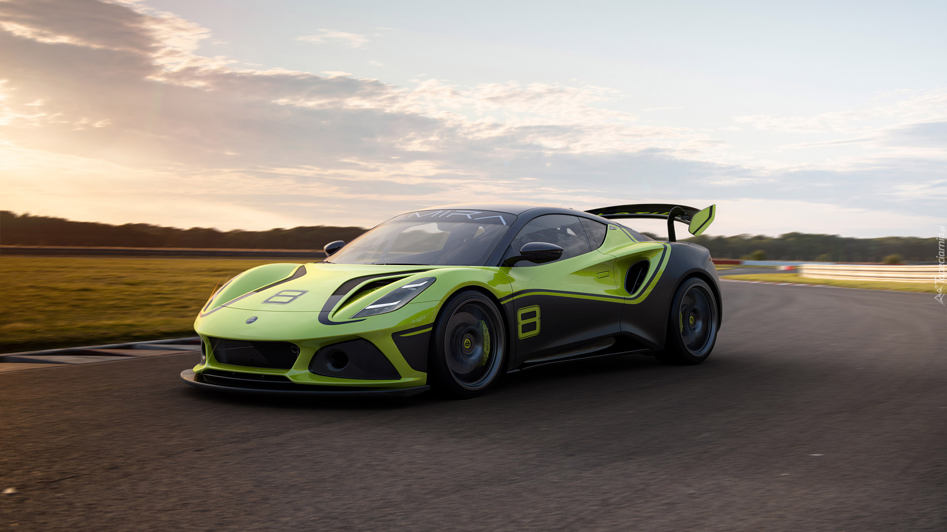 Edytor tapety: Zielony Lotus Emira GT4 na torze
