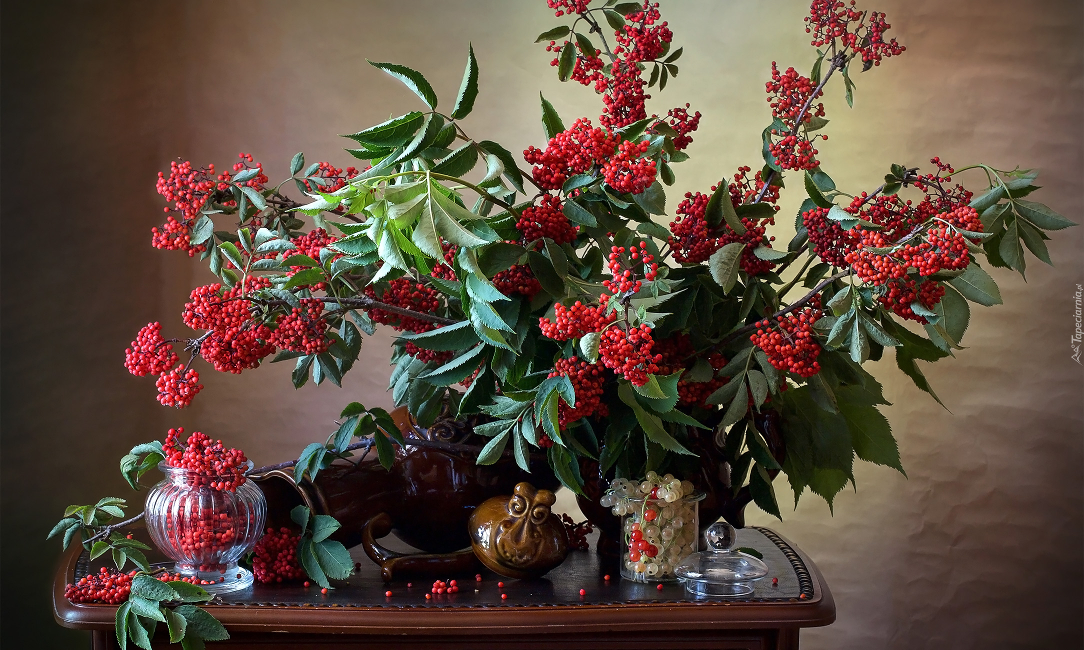Edytor tapety: Jarzębina w wazonie na stoliku