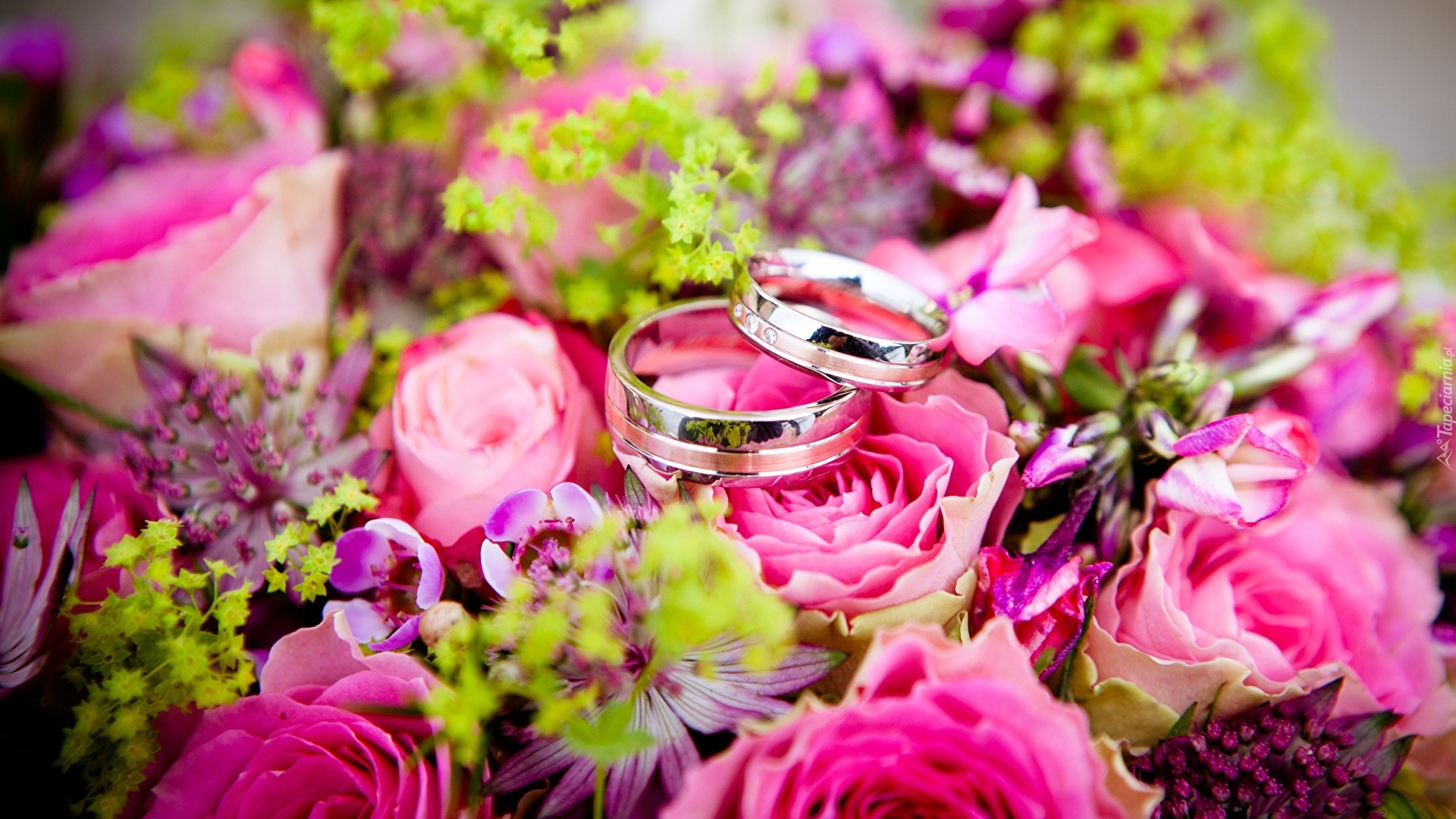 Edytor tapety: Obrączki na bukiecie kwiatów