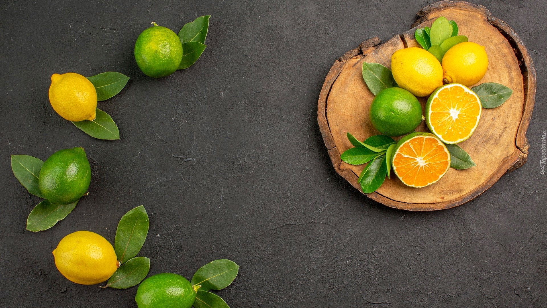 Edytor tapety: Limonki i cytryny na drewnie i obok