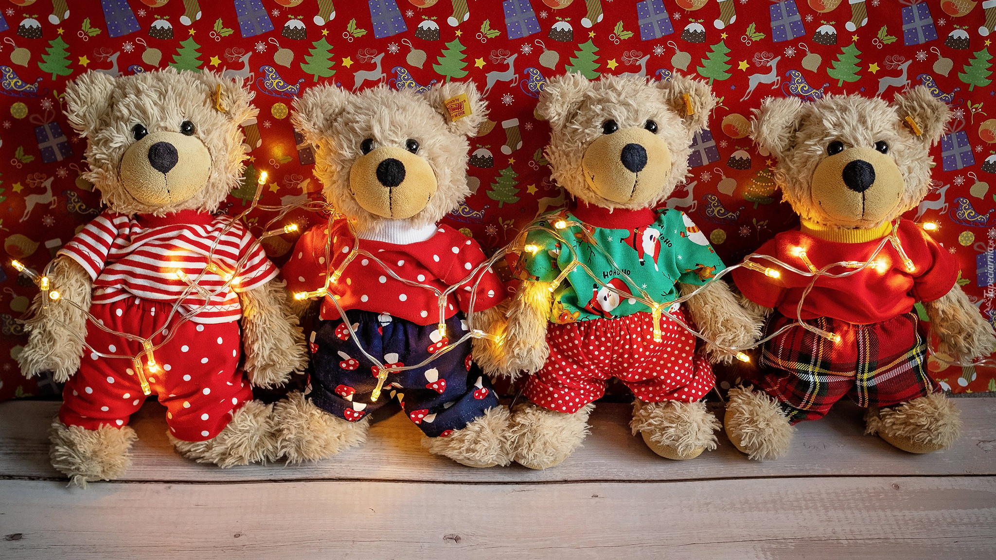 Edytor tapety: Cztery pluszowe misie w ubrankach