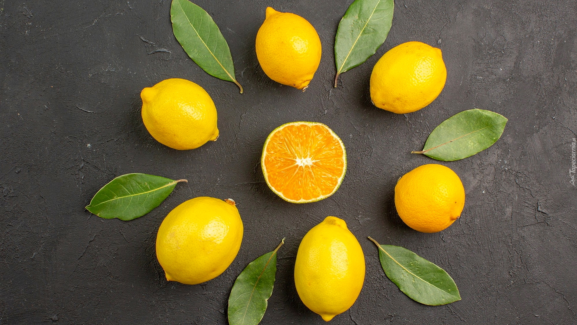 Edytor tapety: Koło z cytryn na ciemnym tle