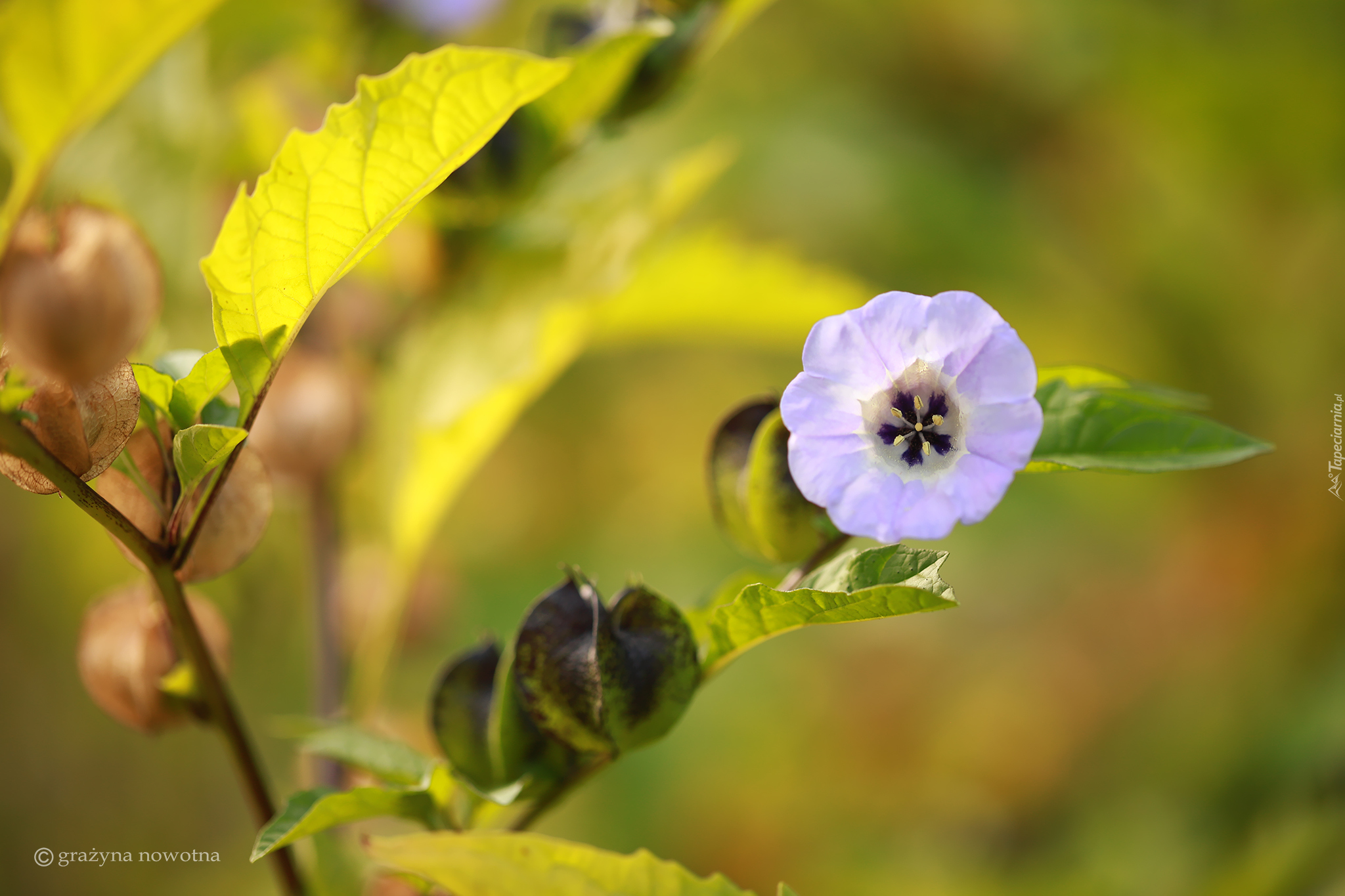 Edytor tapety: Fioletowy kwiat na gałązce