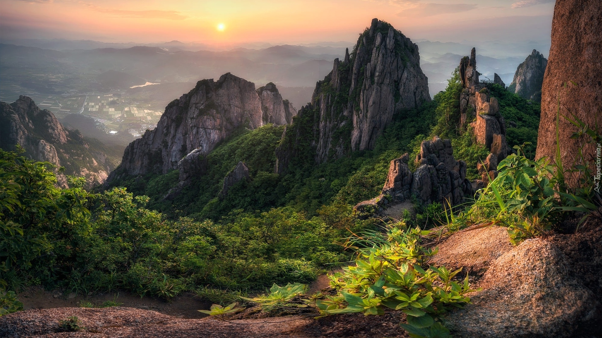 Edytor tapety: Zielona roślinność na skałach