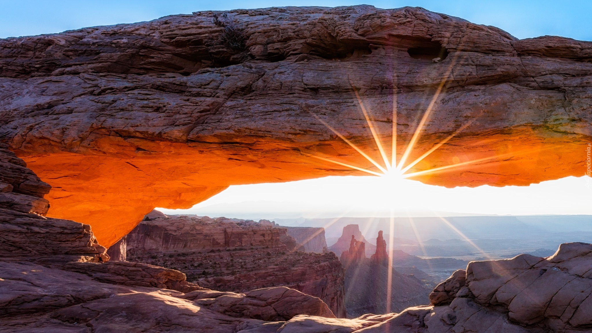Edytor tapety: Łuk Mesa Arch w słonecznych promieniach