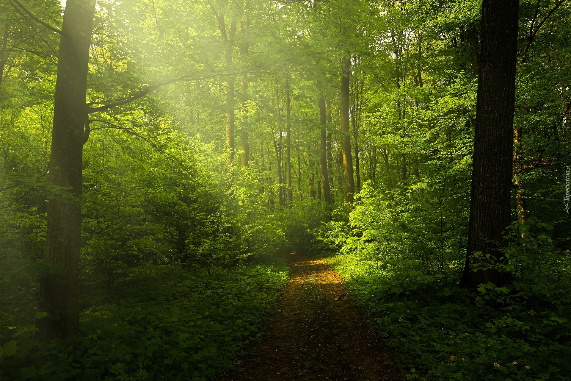 Edytor tapety: Ścieżka przez rozświetlony zielony las