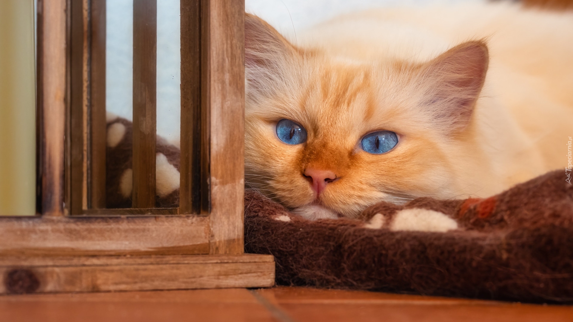 Edytor tapety: Rudo-biszkoptowy kot na kocu