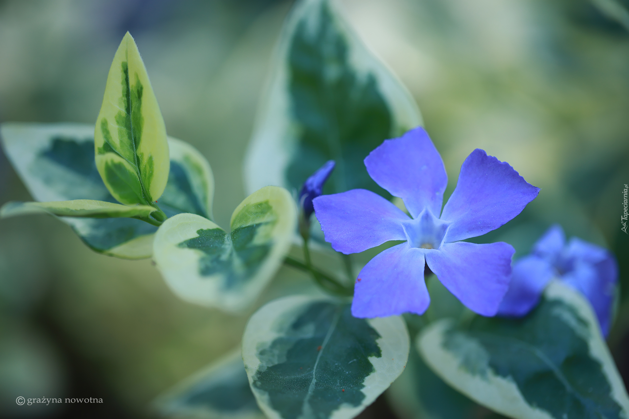 Edytor tapety: Kwitnący niebieski barwinek