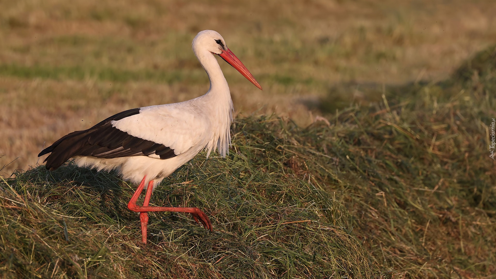 Edytor tapety: Biały bocian na sianie