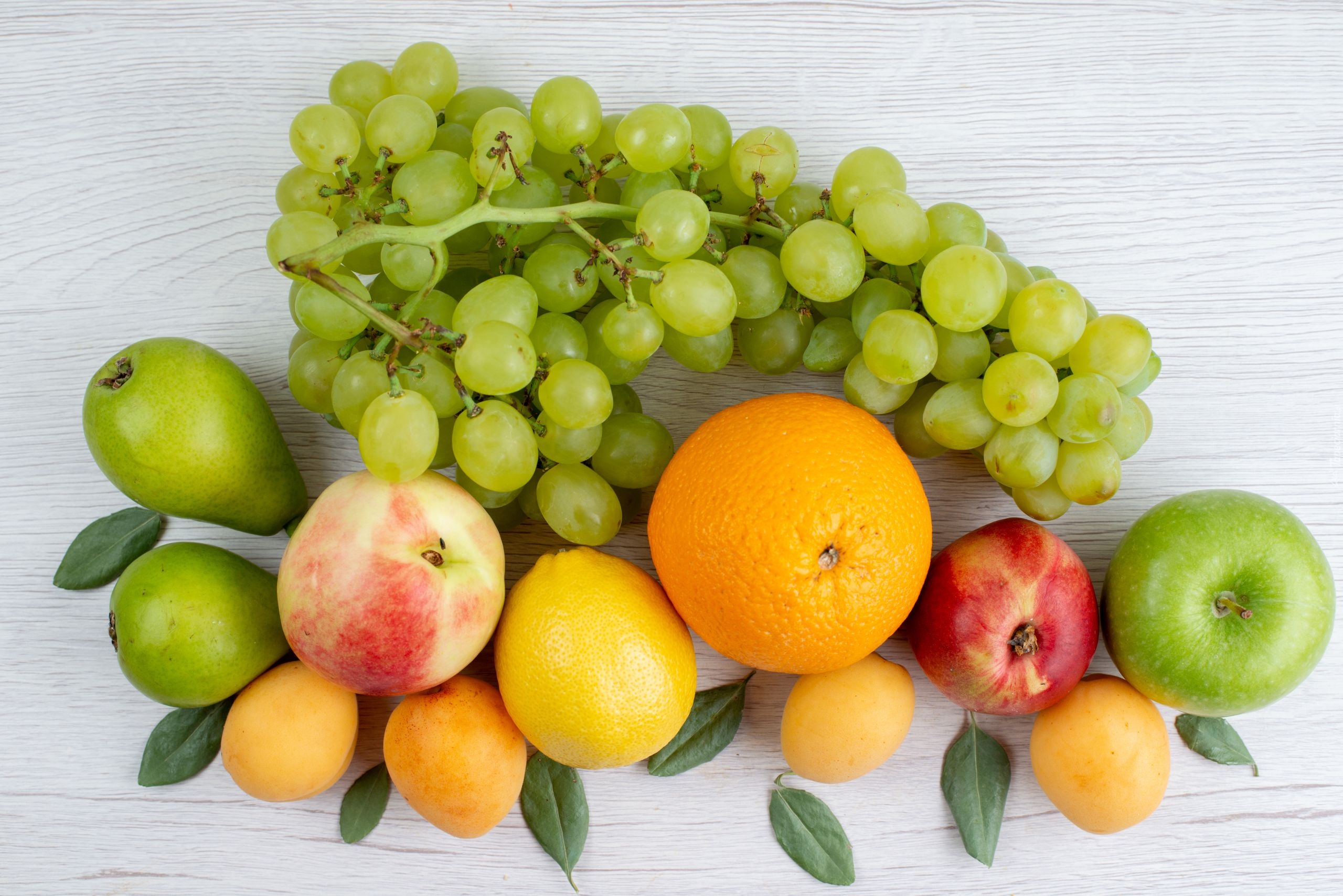 Edytor tapety: Owoce na białych deskach