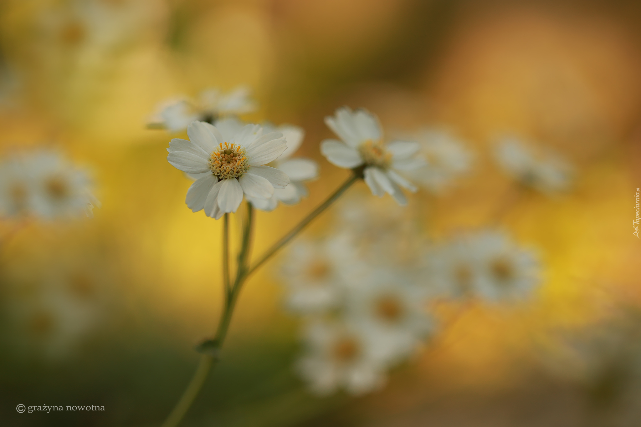 Edytor tapety: Białe kwiaty krwawnika w rozmyciu
