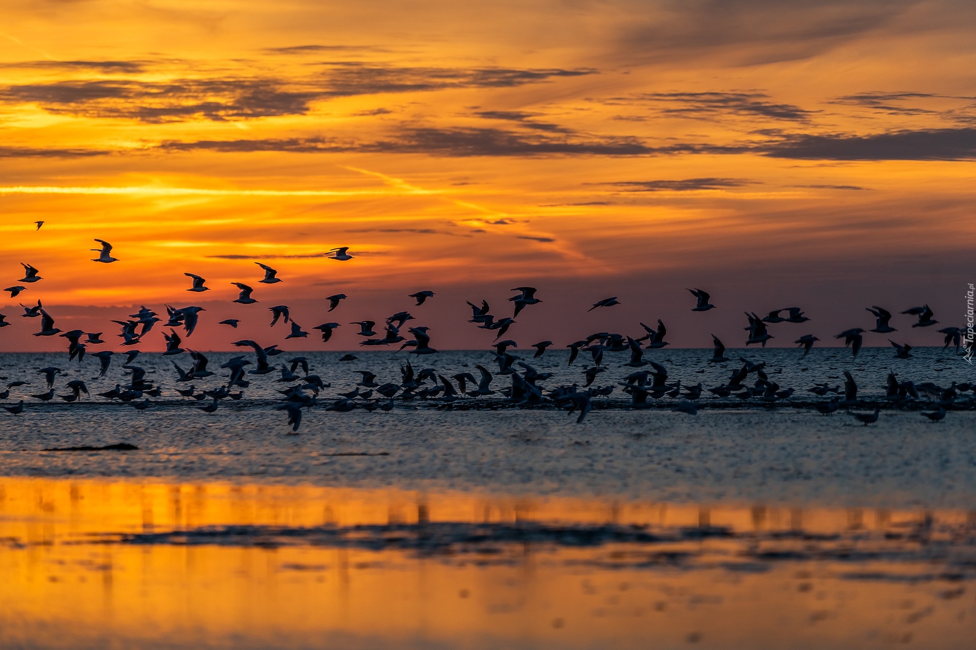 Edytor tapety: Ptaki nad morzem o zachodzie słońca