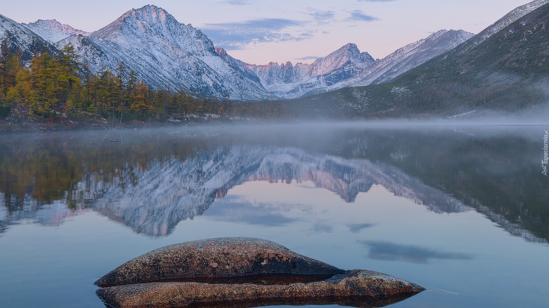Edytor tapety: Mgła nad Jeziorem Nevidimka w Górach Kołymskich