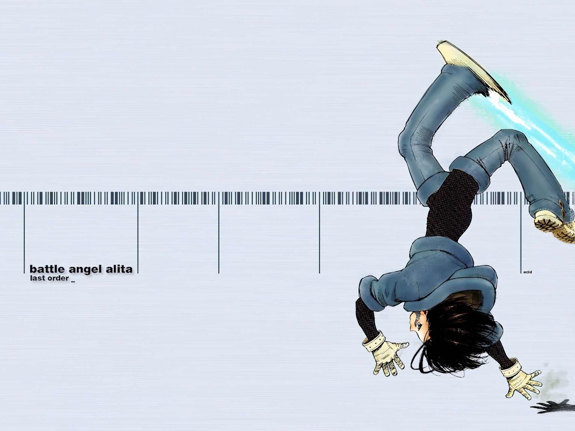 Edytor tapety: Battle Angel Alita, kod kreskowy, postać, napisy