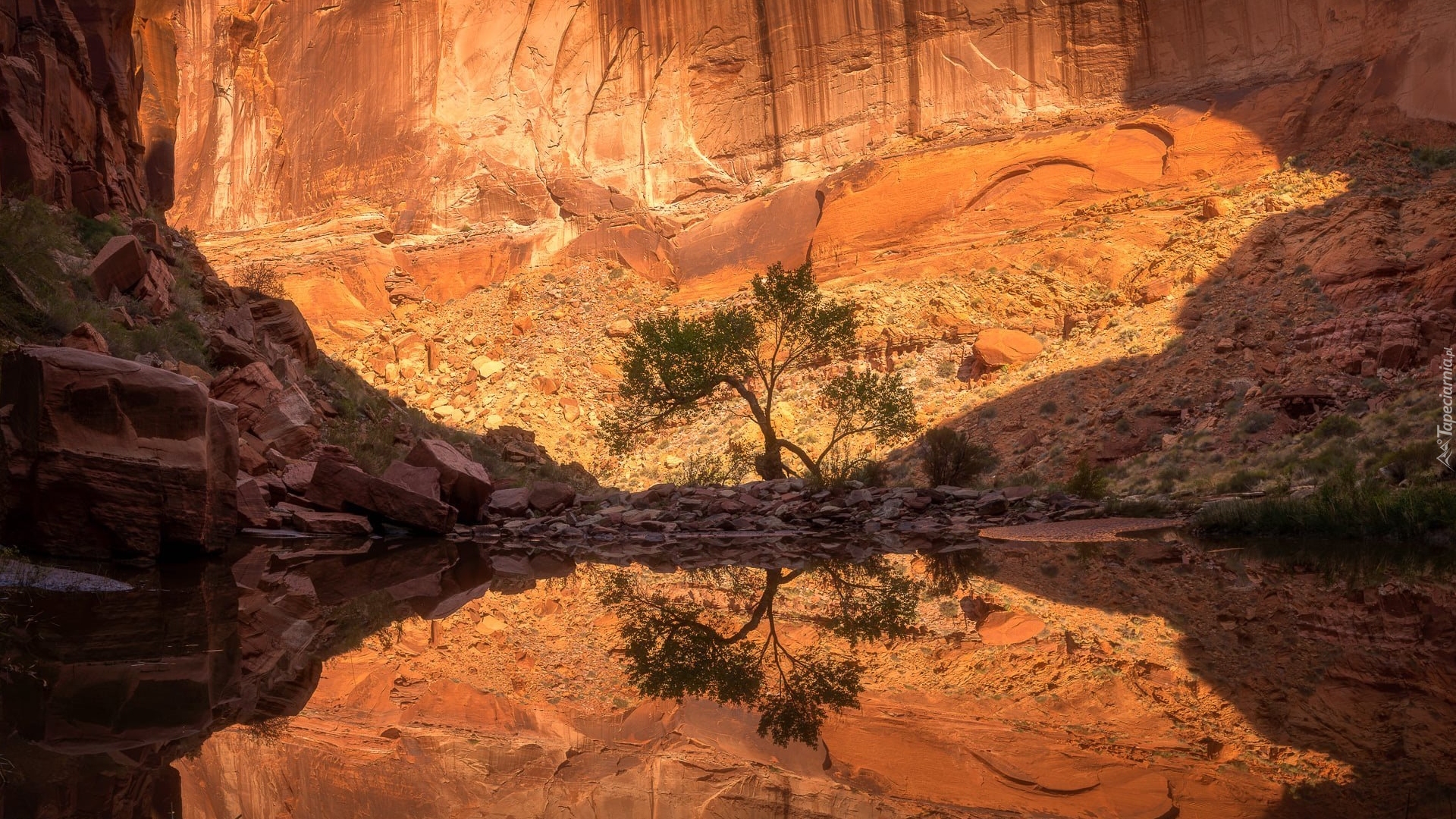 Edytor tapety: Drzewo na skale nad jeziorem Powell Lake