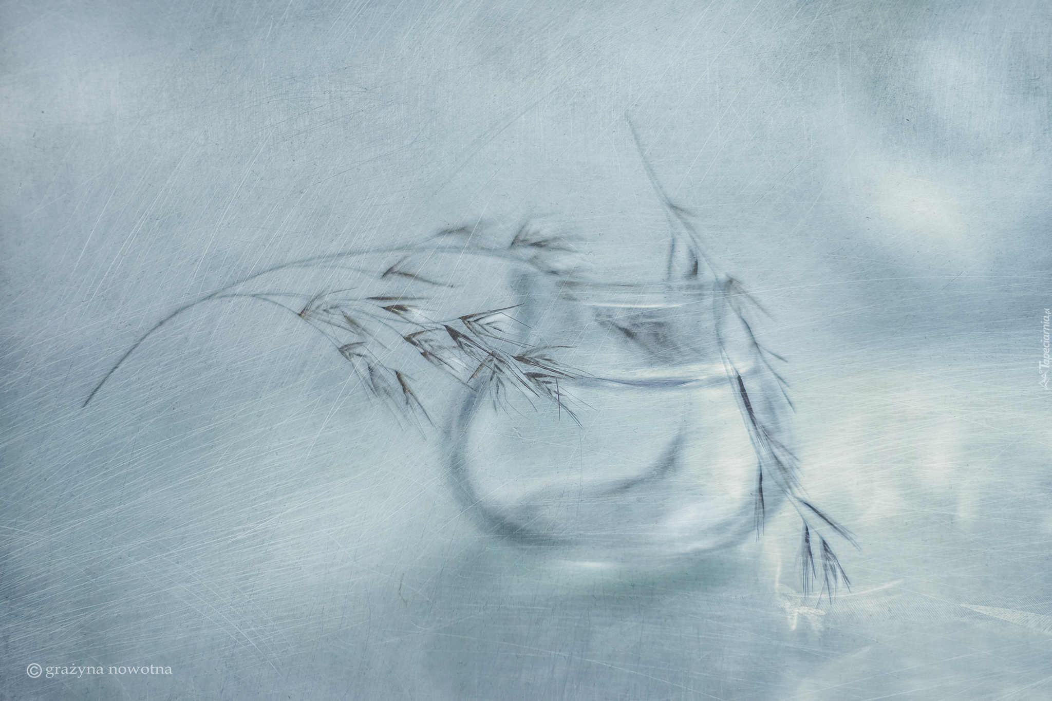 Edytor tapety: Gałązki suchej trawy przy szklanym wazoniku