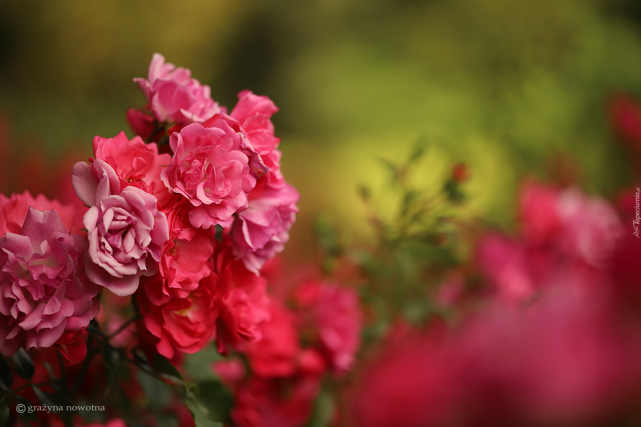 Edytor tapety: Krzew z różowymi różami na rozmytym tle