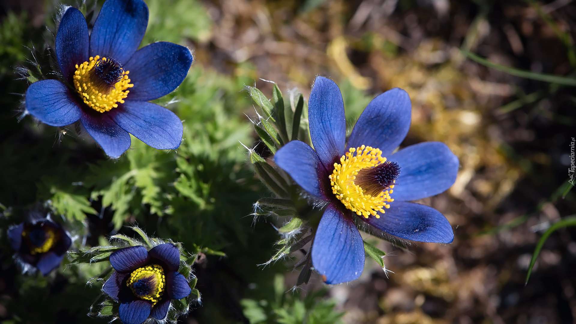 Edytor tapety: Rozświetlone niebieskie sasanki