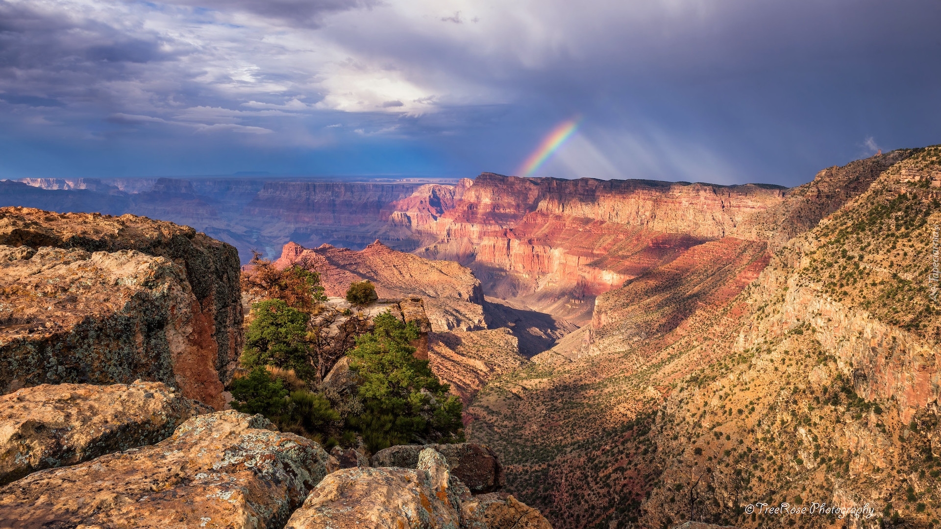 Edytor tapety: Tęcza i zachmurzone niebo nad Wielkim Kanionem Kolorado