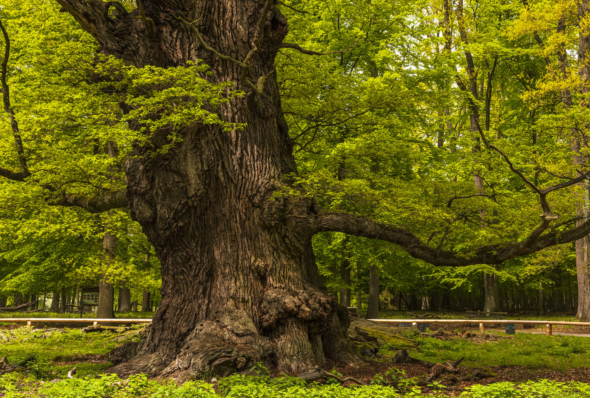 Edytor tapety: Rozłożyste zielone drzewo w parku