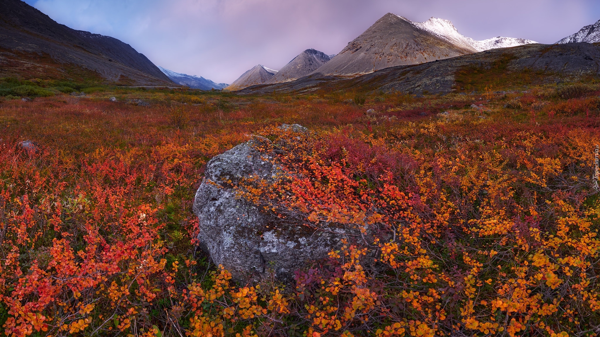 Edytor tapety: Kolorowa roślinność i widok na góry Chibiny