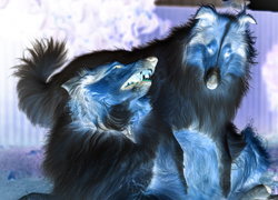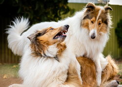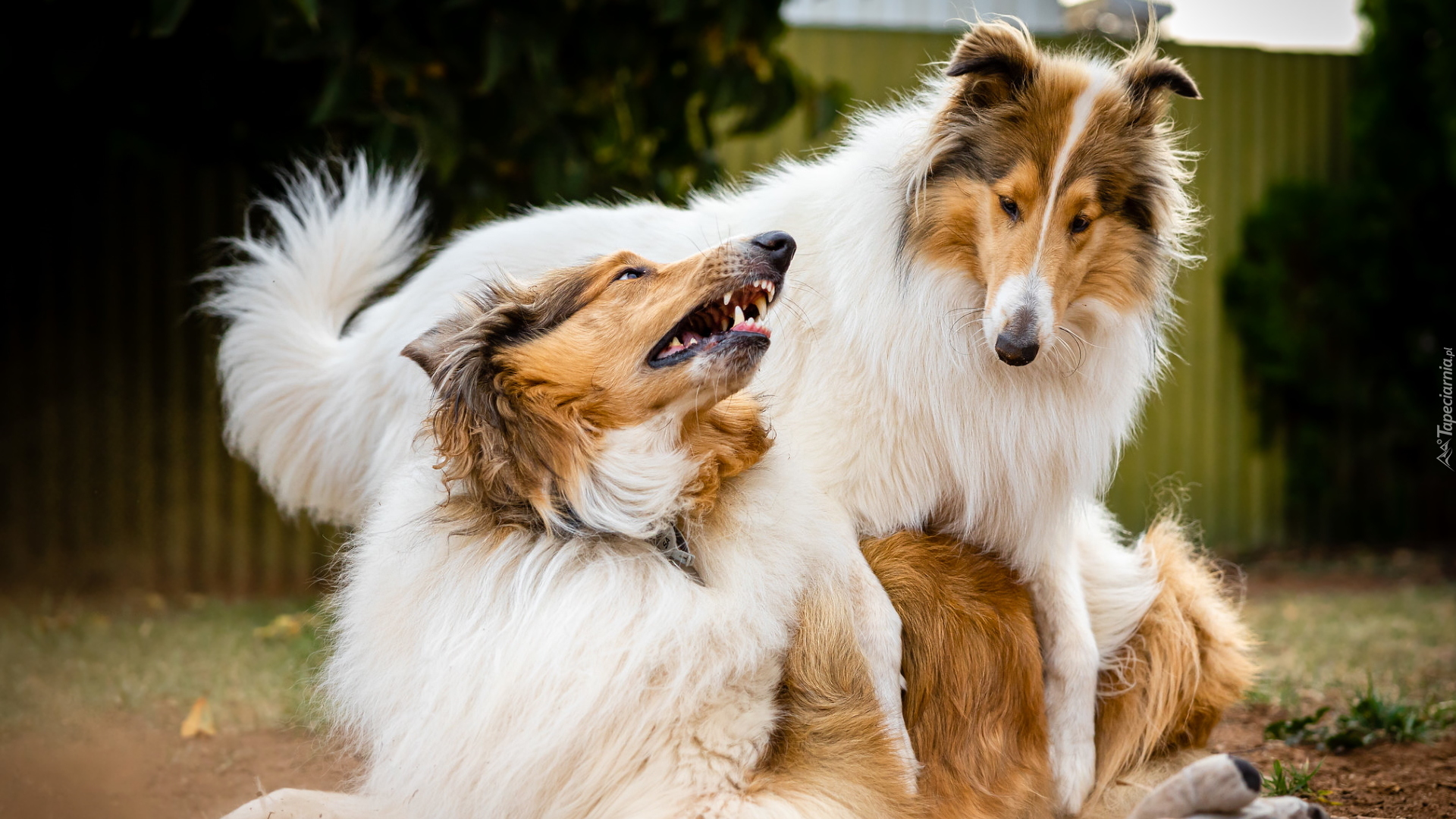 Edytor tapety: Dwa bawiące się owczarki szkockie długowłose