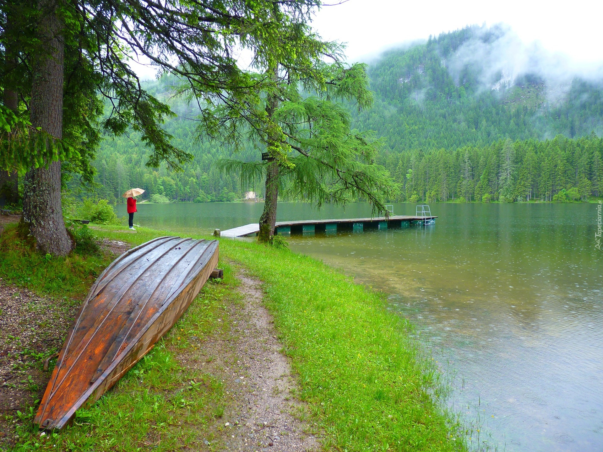 Edytor tapety: Deszczowy dzień nad jeziorem