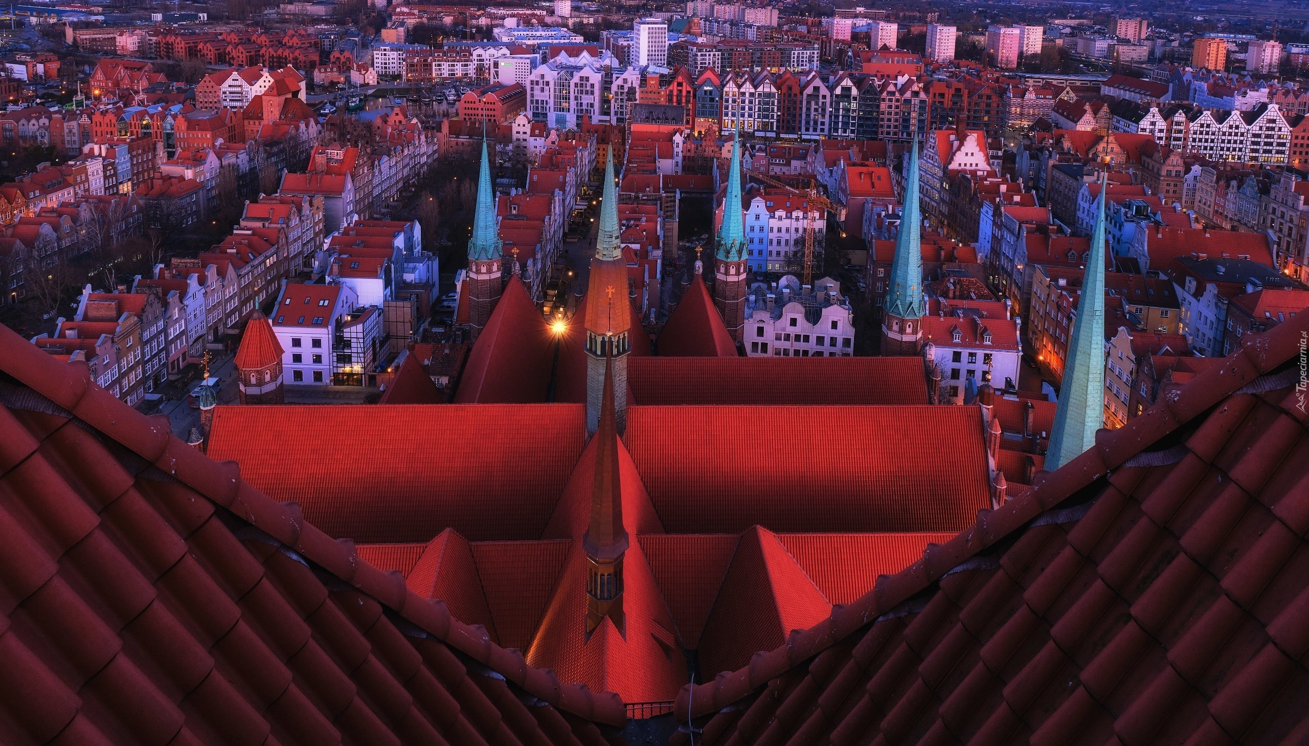 Edytor tapety: Widok z dachu na kolorowe domy w Gdańsku