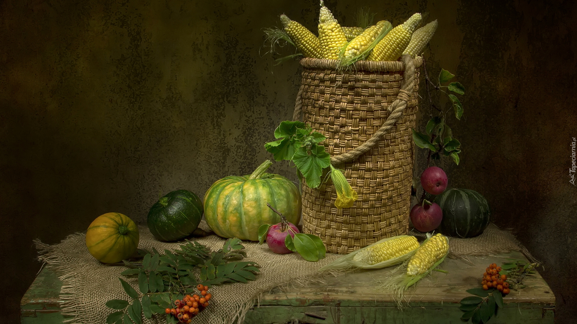 Edytor tapety: Kompozycja z dyń i kukurydzy