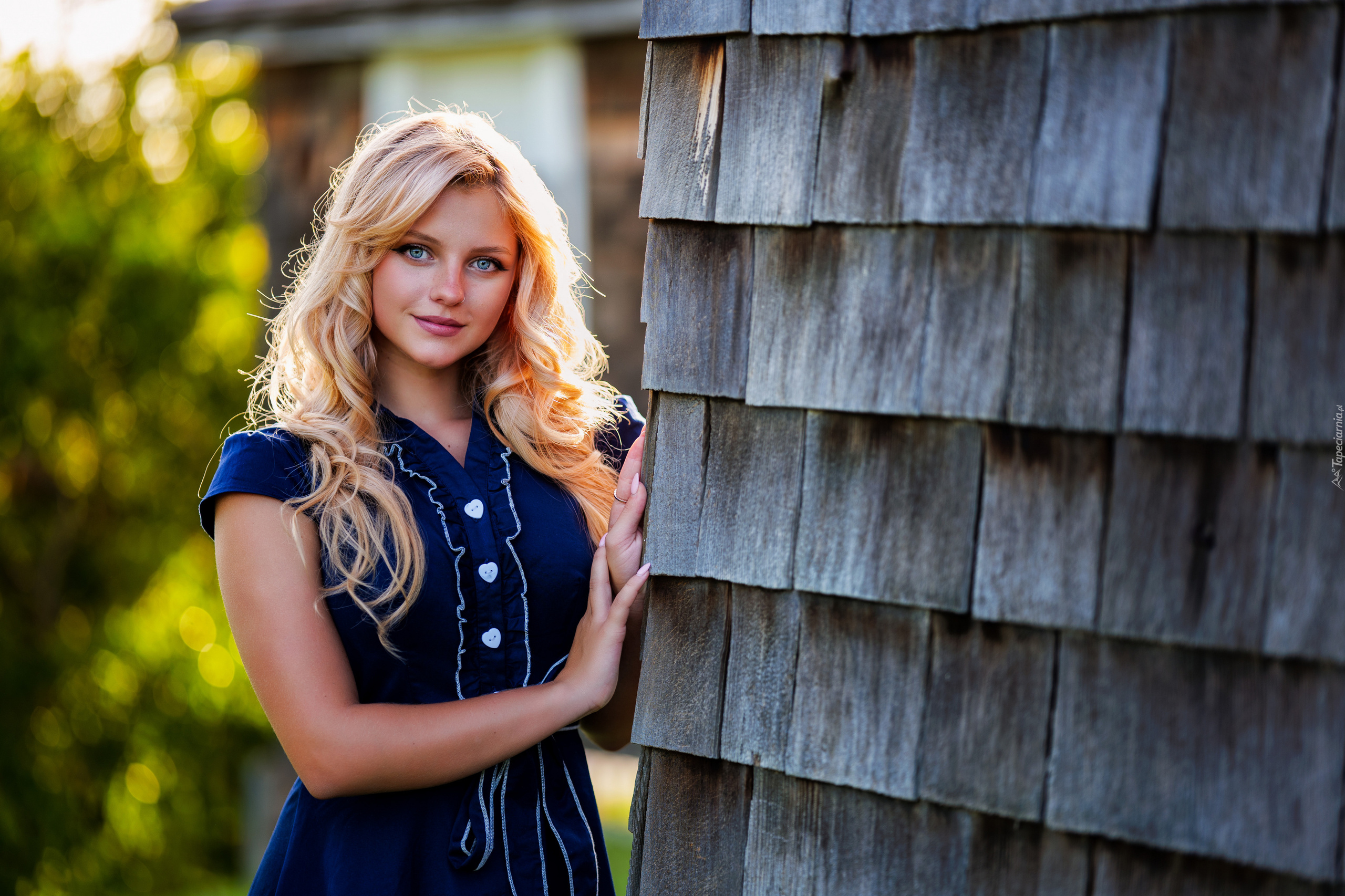 Edytor tapety: Długowłosa blondynka w granatowej sukience
