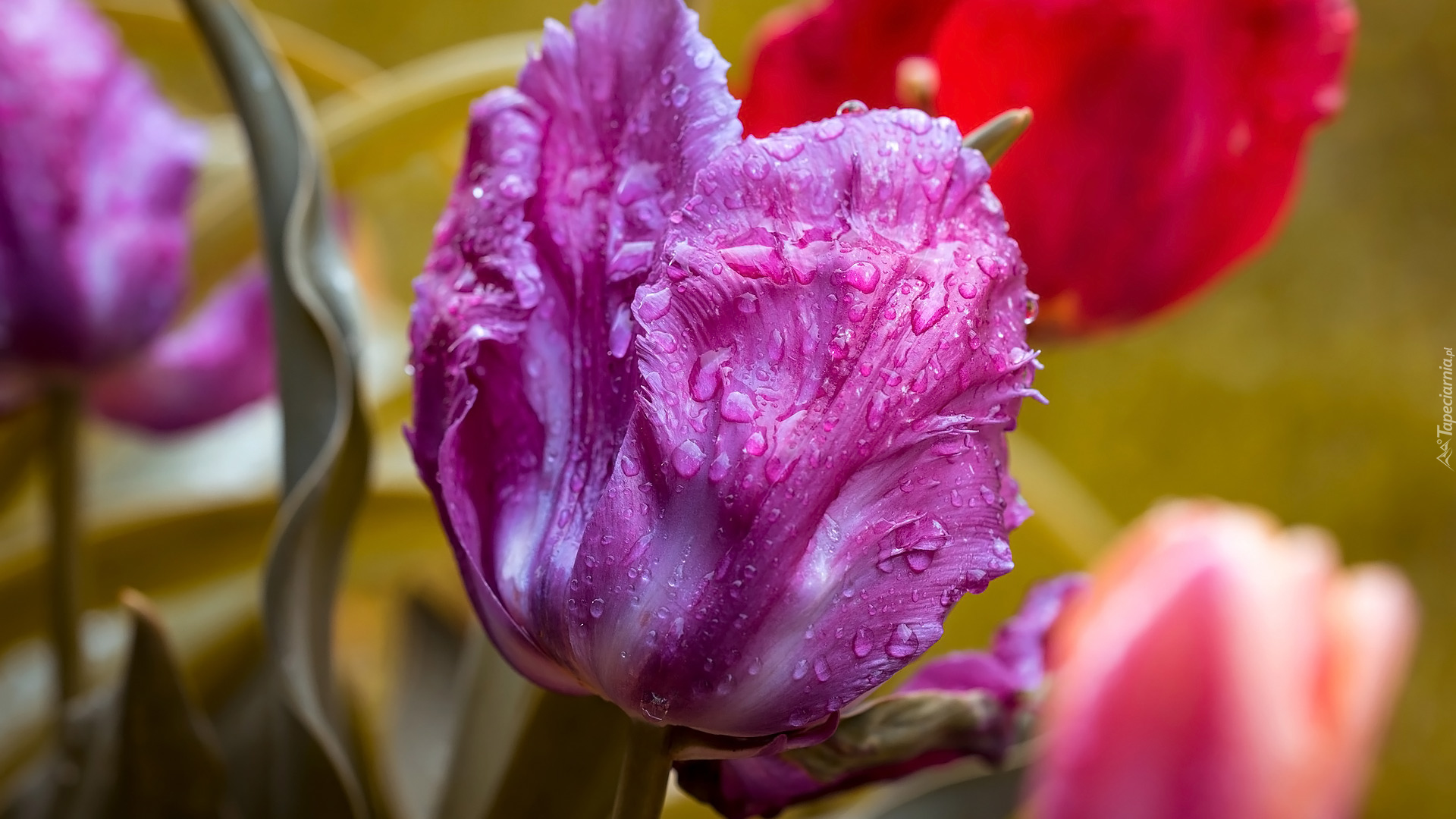 Edytor tapety: Mokry fioletowy tulipan